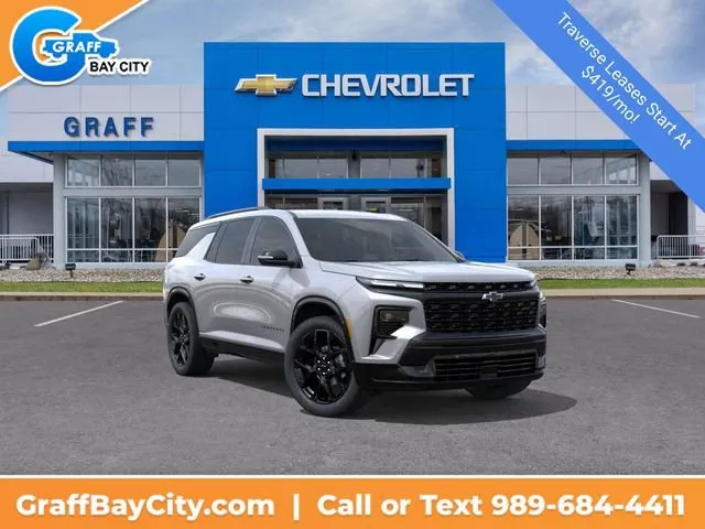 The Chevrolet Traverse is a three-row SUV with seating for up to eight passengers, spacious cargo areas, advanced safety features, and intuitive technology. It delivers smooth handling and reliable performance. Available new and used at Graff Chevrolet Bay City, ideal for families.